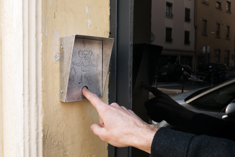 « Ouverture sur un leitmotiv » est une sonnette d’entrée spécialement conçus pour l’exposition, dont le design sonore est adressé à la galeriste du lieu. Alors que les vitres de l’espace ont été obscurcies par un filtre occultant, le visiteur n’a d’autre choix que d’activer la sonnette pour entrer. Audible depuis la rue, le signal d’appel annonce les déplacements de la galeriste Marie Bassano (encore invisible à la vue) et l’arrivée d’un changement.