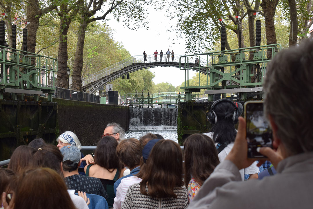 À travers une succession d’apparitions sonores éparses – sirènes de bateaux, saxophone, voix, etc. – exécutées depuis les rives par des complices et composée en écho à l’environnement sonore du canal, cette performance était une invitation à détourner le regard pour décentrer notre attention et nos sens. À bord de l’Arletty ou depuis les berges, le public était invité à tendre l’oreille pour se laisser surprendre par ce qui opère sous la surface de l’audible. Au fil de l’eau, le temps d’une après-midi, l’expérience déployait un contexte singulier d’écoute pour exercer collectivement notre attention à l’environnement urbain.